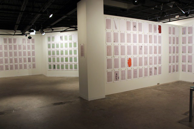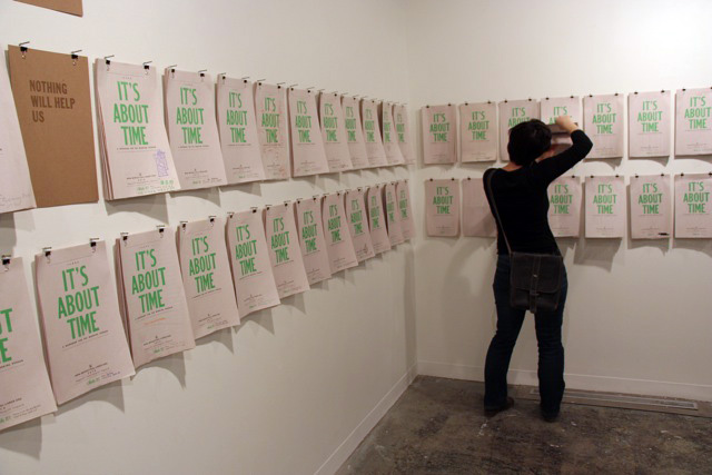 Above: Pages from members' completed ILSSA It's About Time workbooks. Below: ILSSA It's About Time installed at Coburn Gallery, Colorado College, 2014.